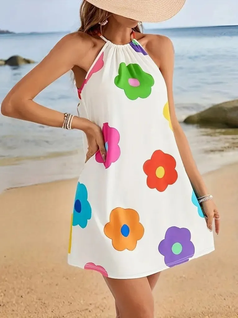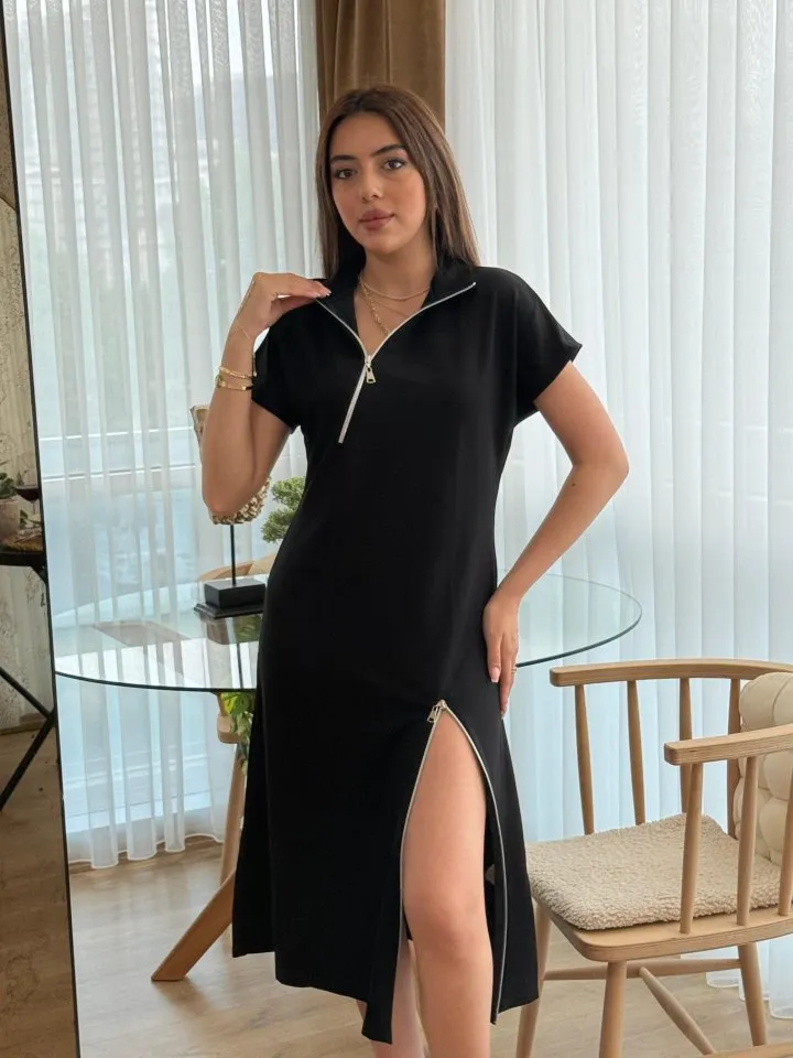فستان ميدي بأكمام قصيرة وجيوب وياقة دائرية للنساء - Beyond Store
