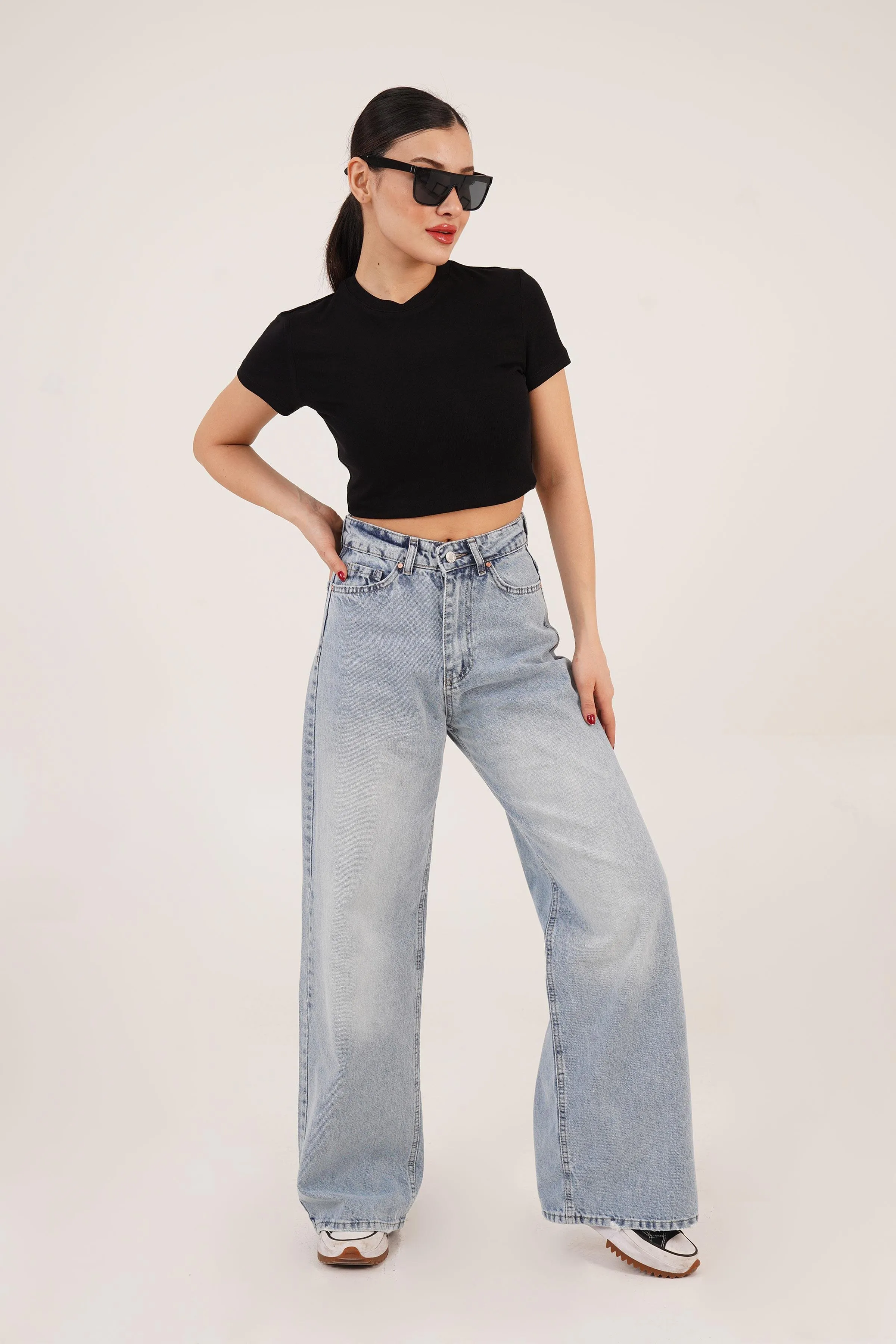 بنطلون جينز كاجوال بخصر عالي و سادة للنساء - Beyond Store