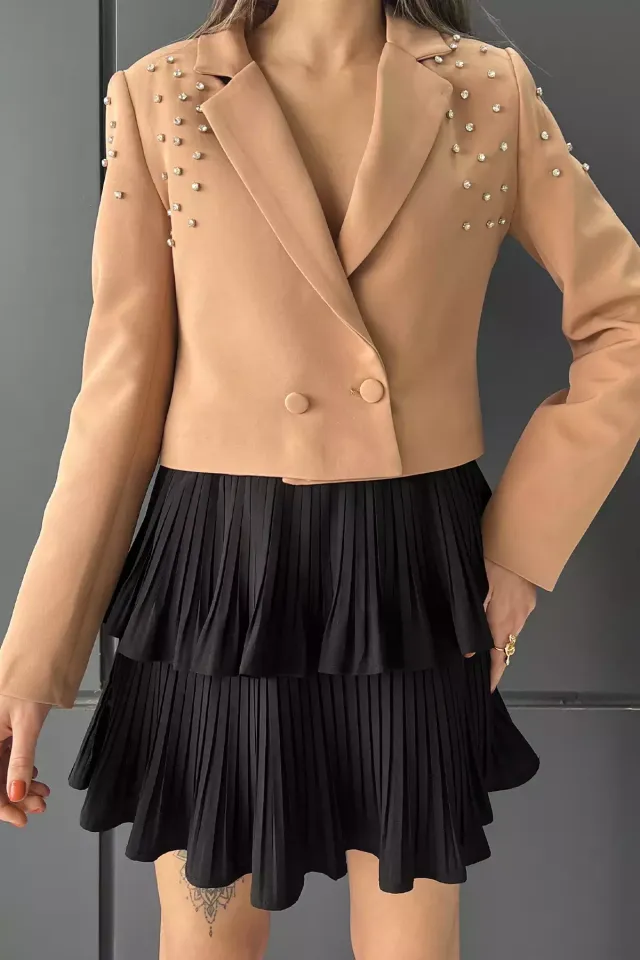بليزر نسائي بأكمام طويلة وجيب مزدوج وياقة مطوية مكون من قطعتين - Beyond Store