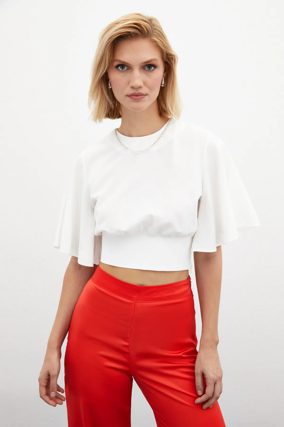 بلوزة ضيقة بقصة مربعة وتفاصيل درزات - Beyond Store