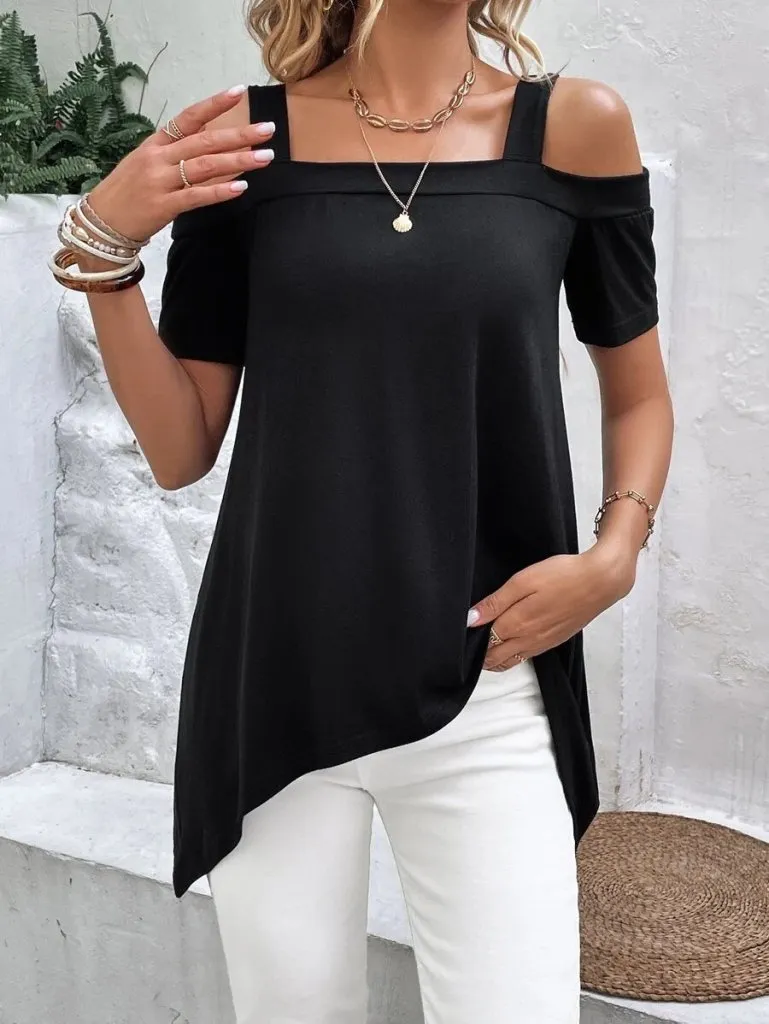 بلوزة ضيقة بقصة مربعة وتفاصيل درزات