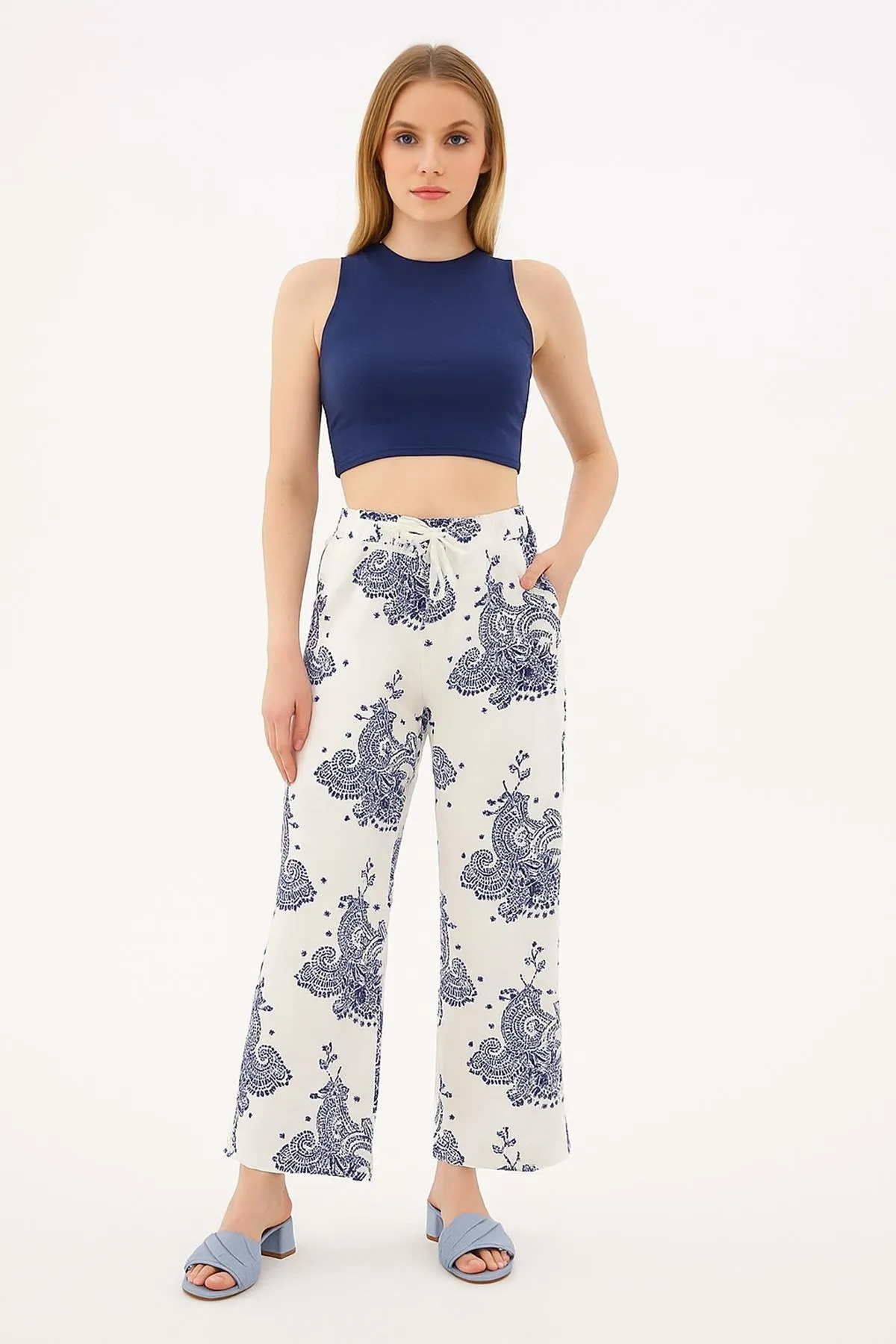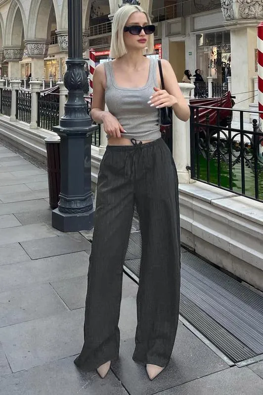 بنطلون نسائي بخصر مرتفع وقصّة واسعة، يمنحك إطلالة أنيقة وعصرية تلفت الأنظار.