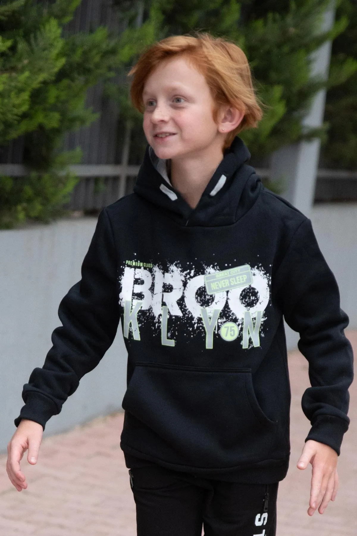 سويتشيرت مخطط بياقة دائرية وتفاصيل جيب للأولاد
