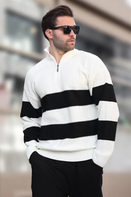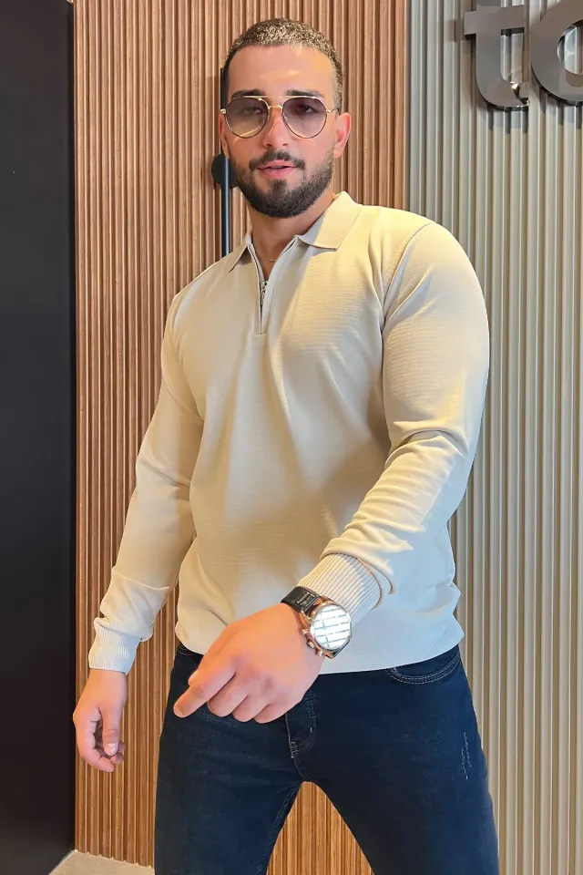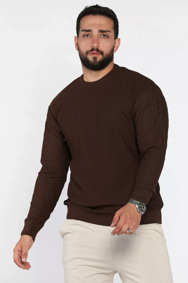 سويتر رجالي بياقة دائرية وأكمام طويلة بتفاصيل منقوشة - Beyond Store