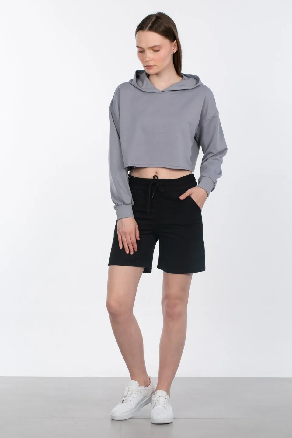 شورت نسائي مزدوج الجيب بخصر مرتفع