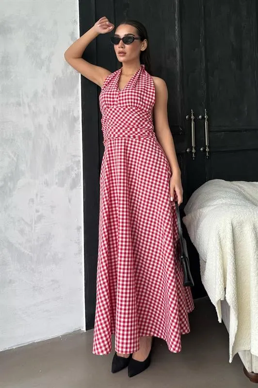 فستان نسائي كاجوال متوسط ​​الطول بأكمام عادية ورقبة دائرية