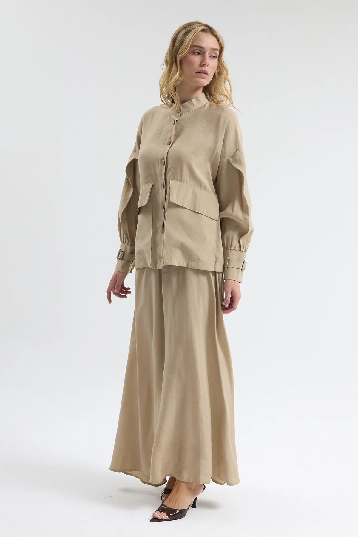 طقم تونيك وتنورة أوفر سايز بسحاب أمامي وأكمام بالون للنساء - Beyond Store
