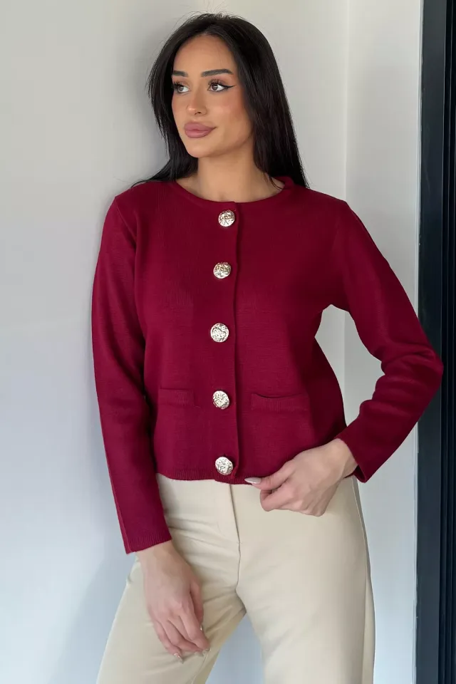 كارديجان منقوش بأكمام طويلة وأزرار أمامية للنساء - Beyond Store