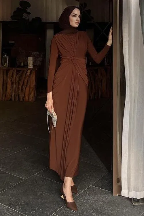 فستان ماكسي نسائي بأكمام منسدلة ورقبة قميص