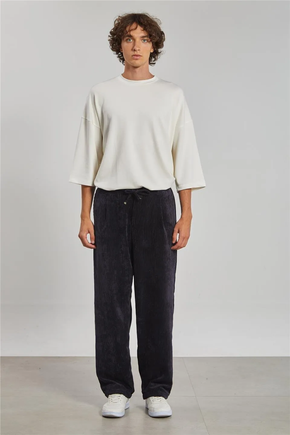 بنطال رجالي سادة فضفاض برباط على الخصر - Beyond Store