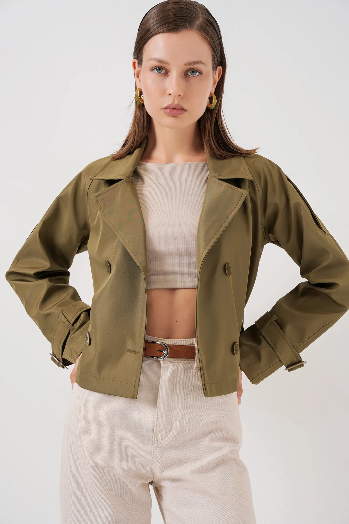 جاكيت نسائي من الفرو الصناعي منقوش بياقة دائرية و أزرار للإغلاق - Beyond Store