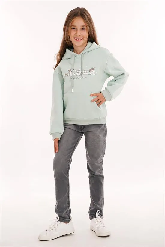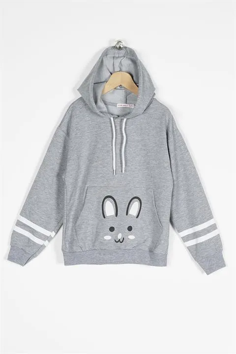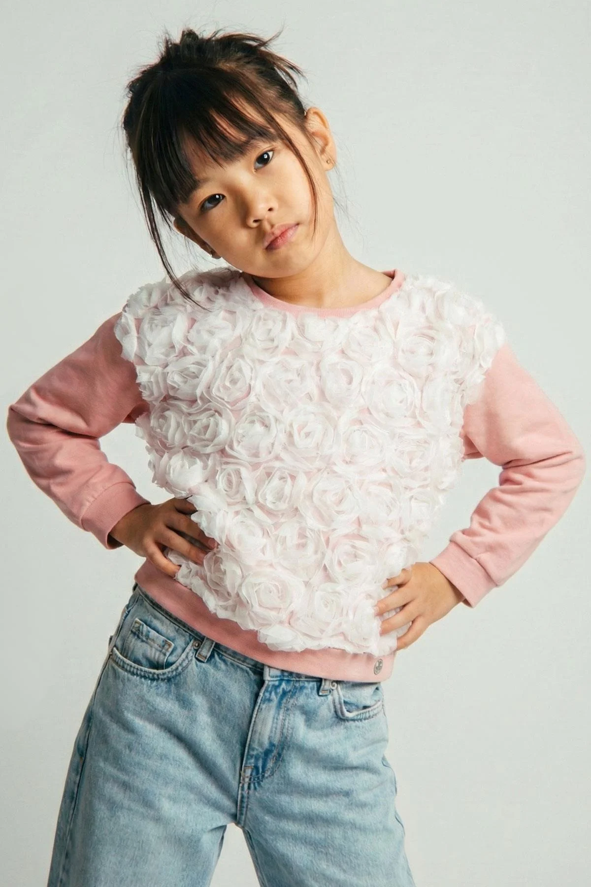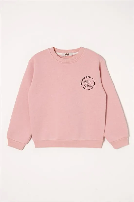 سويتشيرت بناتي بأكمام عادية و ياقة دائرية بتفاصيل فيونكة منقوشة