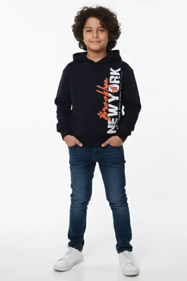 سويتشيرت مطبوع بنمط كتابة و ياقة دائرية بقصة كتف منخفضة للأولاد - Beyond Store