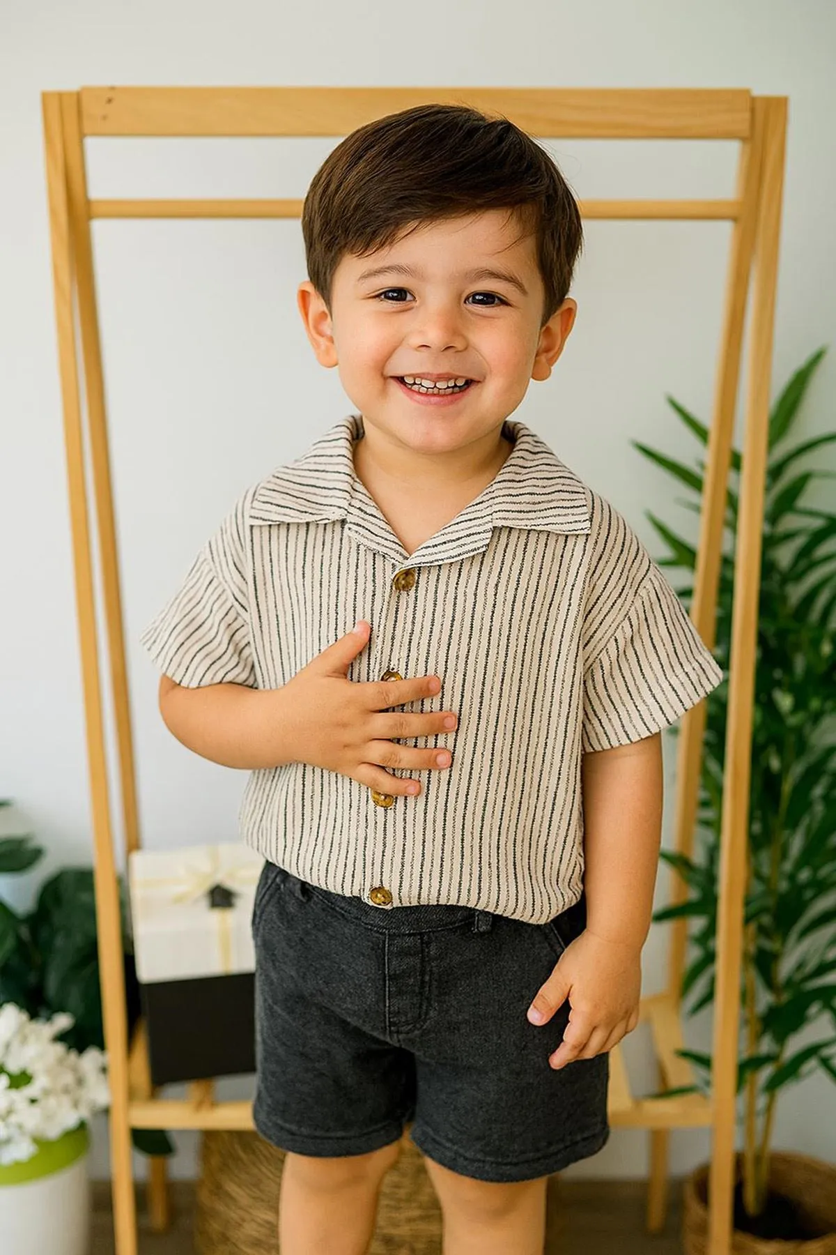 طقم رياضي ولادي اوفرسايز بأكمام واسعة مزمومة من الاسفل و ياقة دائرية - Beyond Store