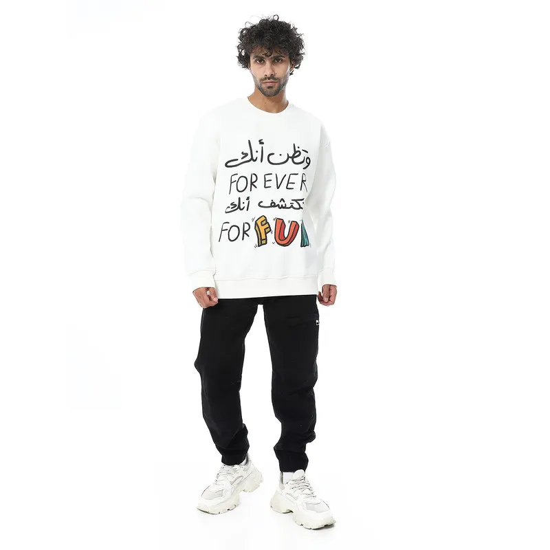 هودي بأكمام طويلة وجيب كنغر مطرز بأحرف للرجال - Beyond Store