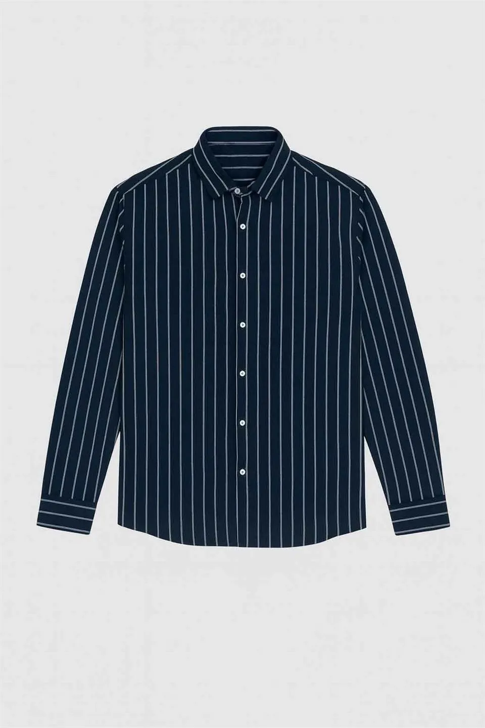 قميص سادة بأكمام طويلة وأزرار أمامية وياقة قائمة