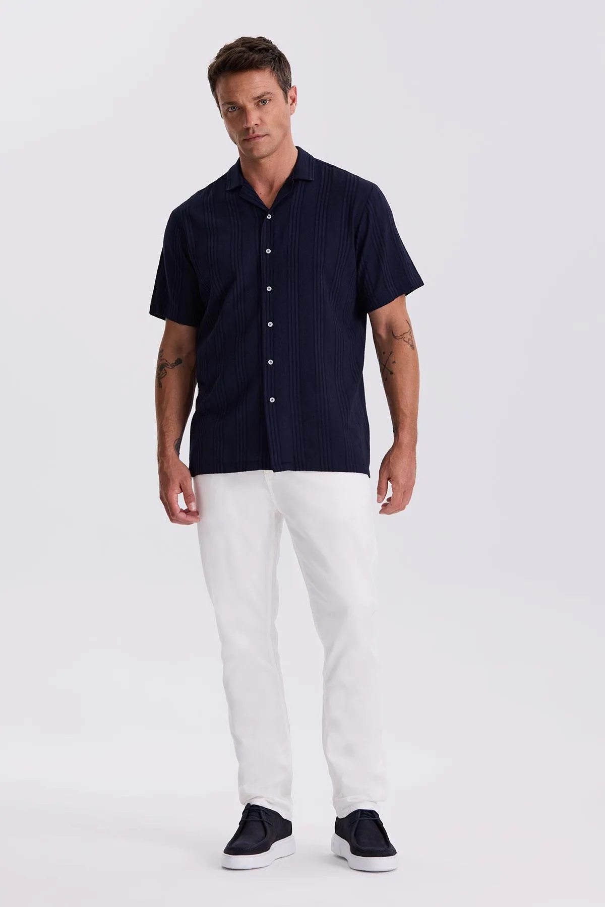 قميص سادة مضلع بأكمام عادية وأزرار أمامية - Beyond Store