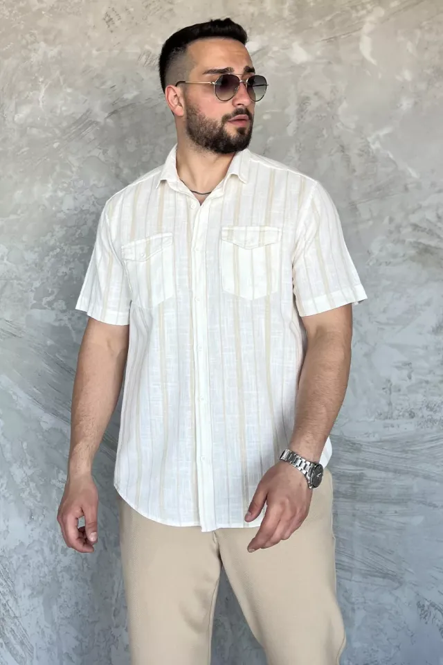 قميص كاجوال بياقة بولو مخططة بأزرار أمامية للرجال - Beyond Store