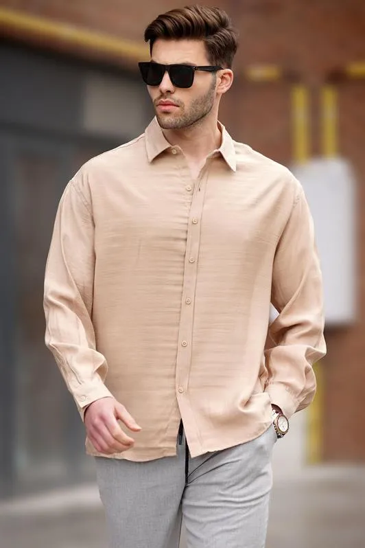 قميص سادة بأكمام عادية وأزرار أمامية وياقة قائمة - Beyond Store