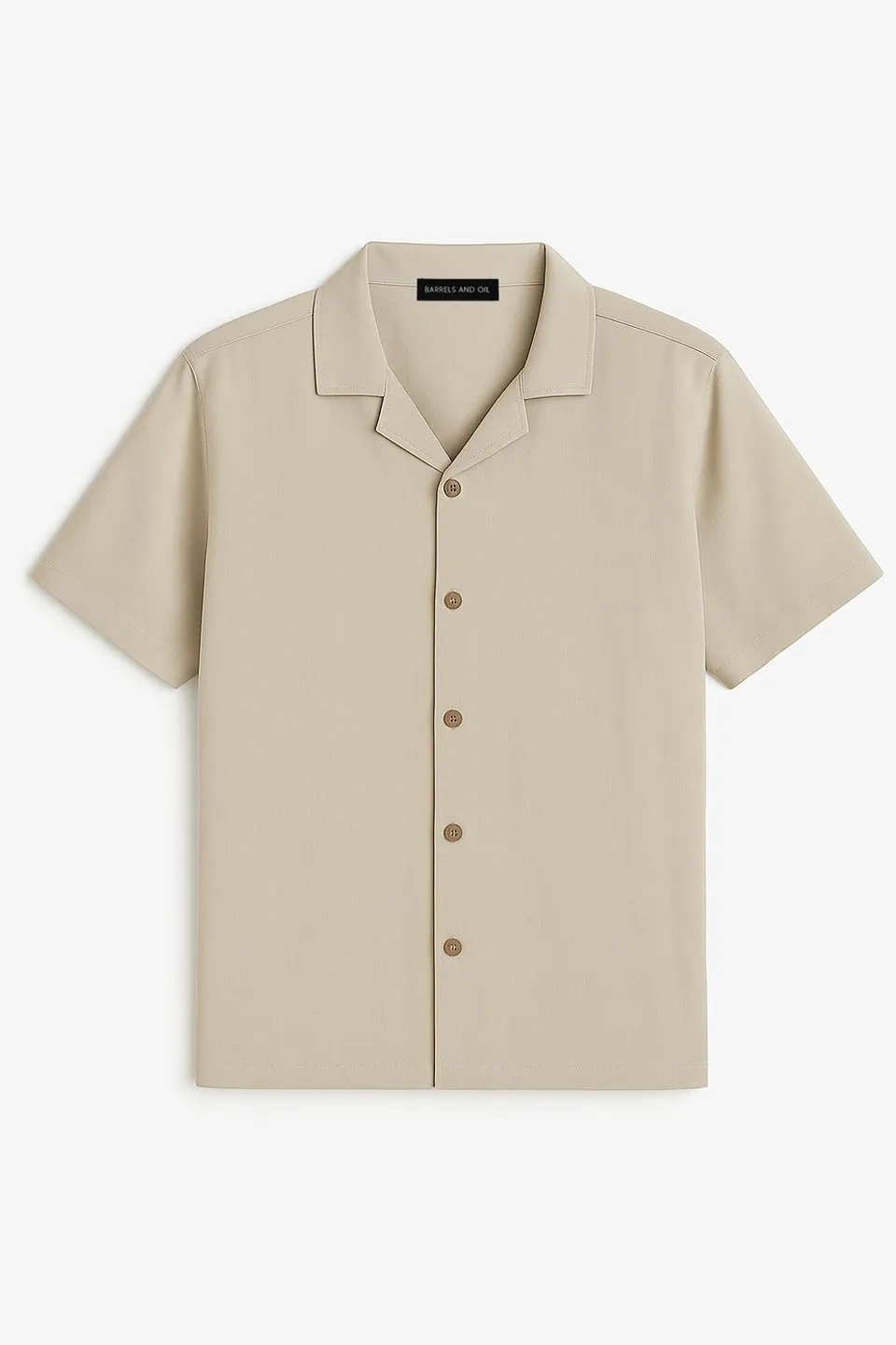 قميص سادة بأكمام طويلة وأزرار أمامية وياقة قائمة - Beyond Store