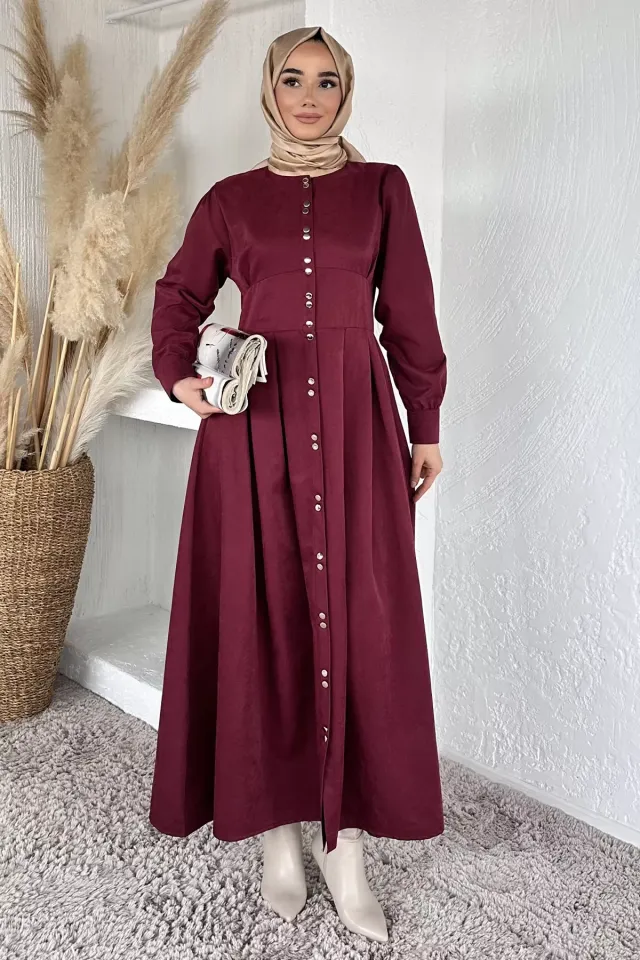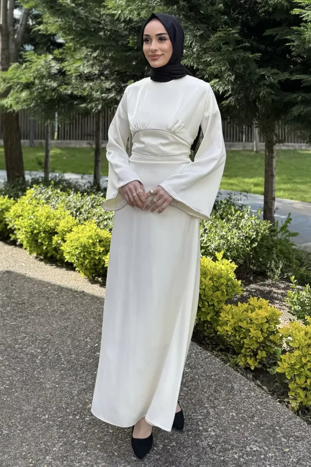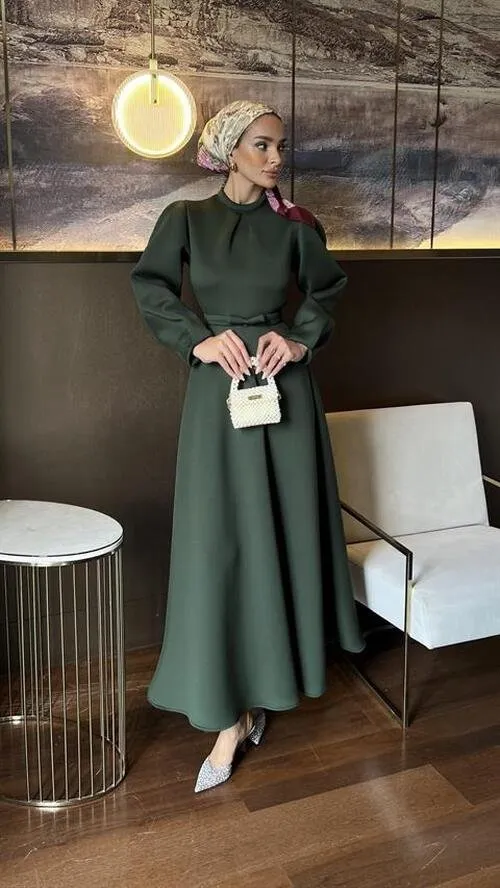 هذا الفستان صمم عشانك لو تبين إطلالة محتشمة بس فيها أناقة. واسع، ناعم، ونقشته ملفتة بشكل بسيط وأنيق.