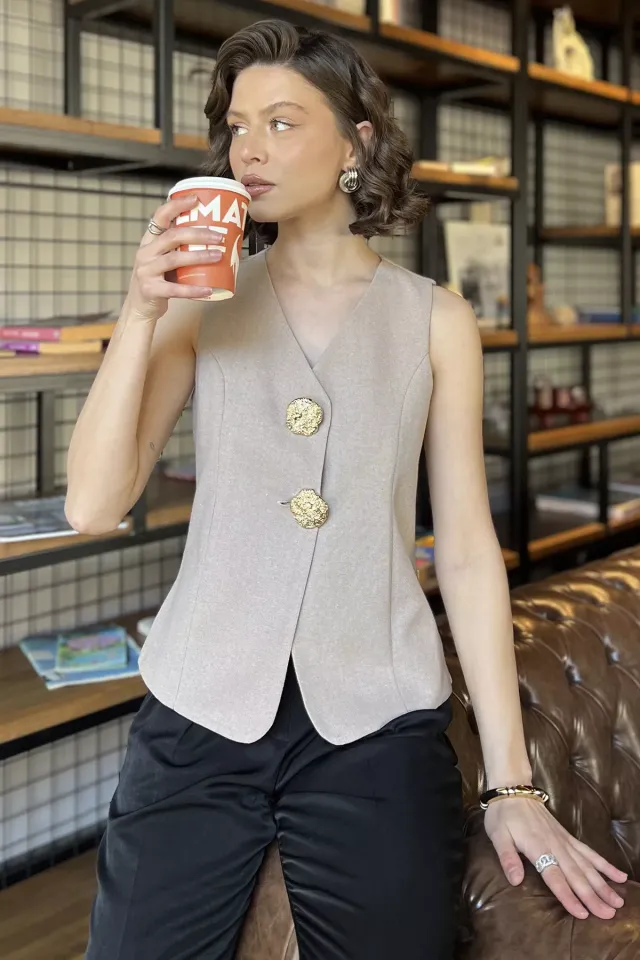 فيست بدون أكمام بأزرار أمامية للنساء - Beyond Store