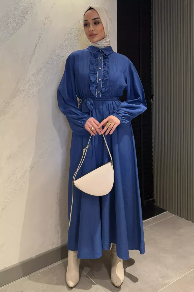 لو تبين شي مريح وسريع تنسقينه، هذا الفستان بيكون صديقك. قصته بسيطة وراقية وخامته تهوّي، يناسب الطلعات الخفيفة والدوام.