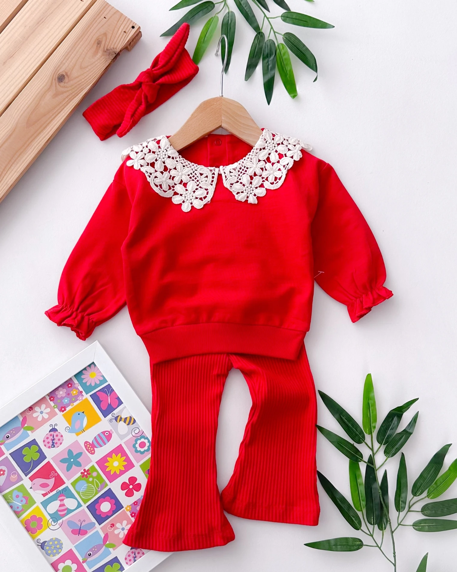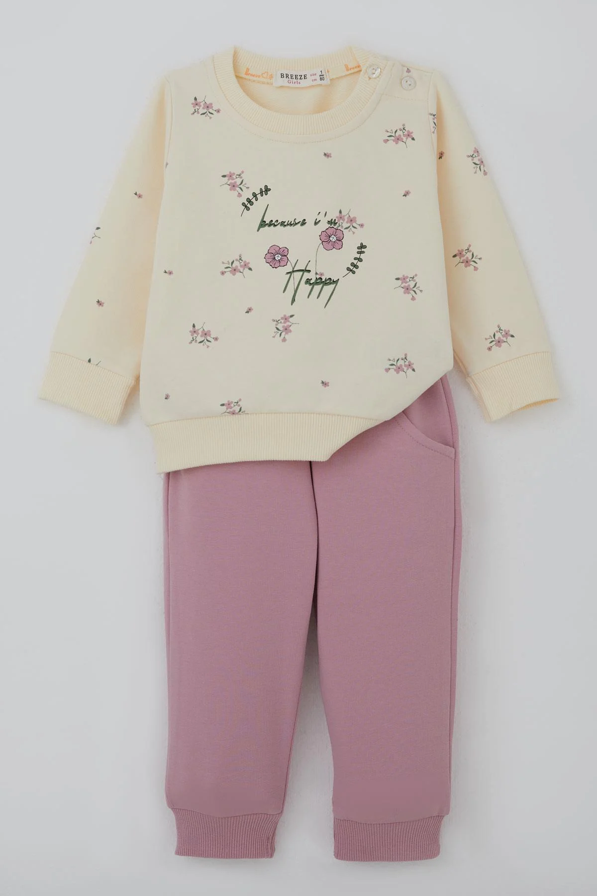 طقم مكون من 3 قطع منقوش بقصة عادية و ياقة دائرية للبنات الرضع - Beyond Store