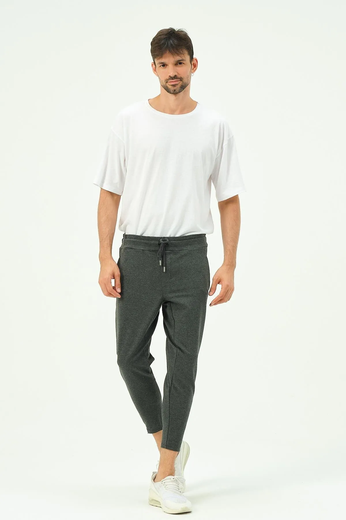 بنطلون رياضي رجالي سادة بخصر مطاطي ورباط - Beyond Store