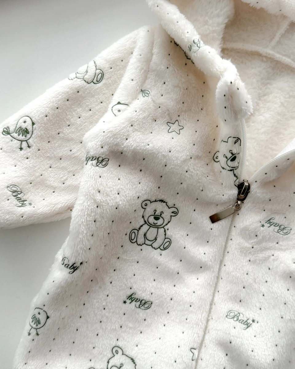 مصنوع من 100% قطن. طقم طويل الأكمام مزين بتفاصيل قوس، مصنوع من قماش قطني ناعم. يحتوي على إغلاق بأزرار من الياقة حتى الكاحل. تصميمه الأنيق والمريح يوفر راحة طوال اليوم.