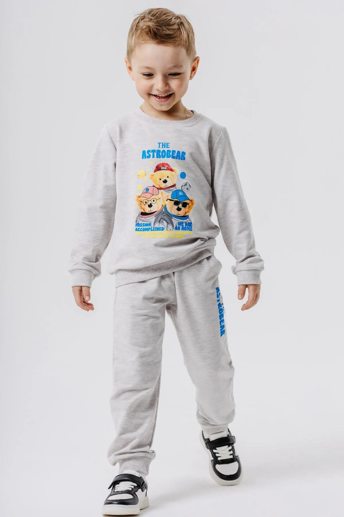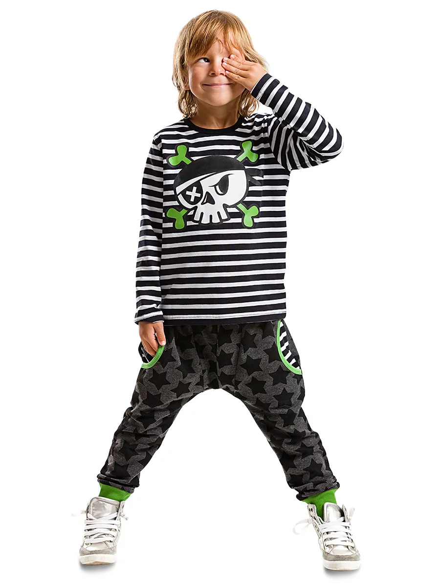 طقم عملي مطرز للأولاد، يتكون من بنطال واسع بجيوب مزدوجة وتيشيرت مريح. تصميم أنيق، مثالي للأنشطة اليومية وحرية الحركة. قابل للغسل في الغسالة على درجة حرارة 30 مئوية.