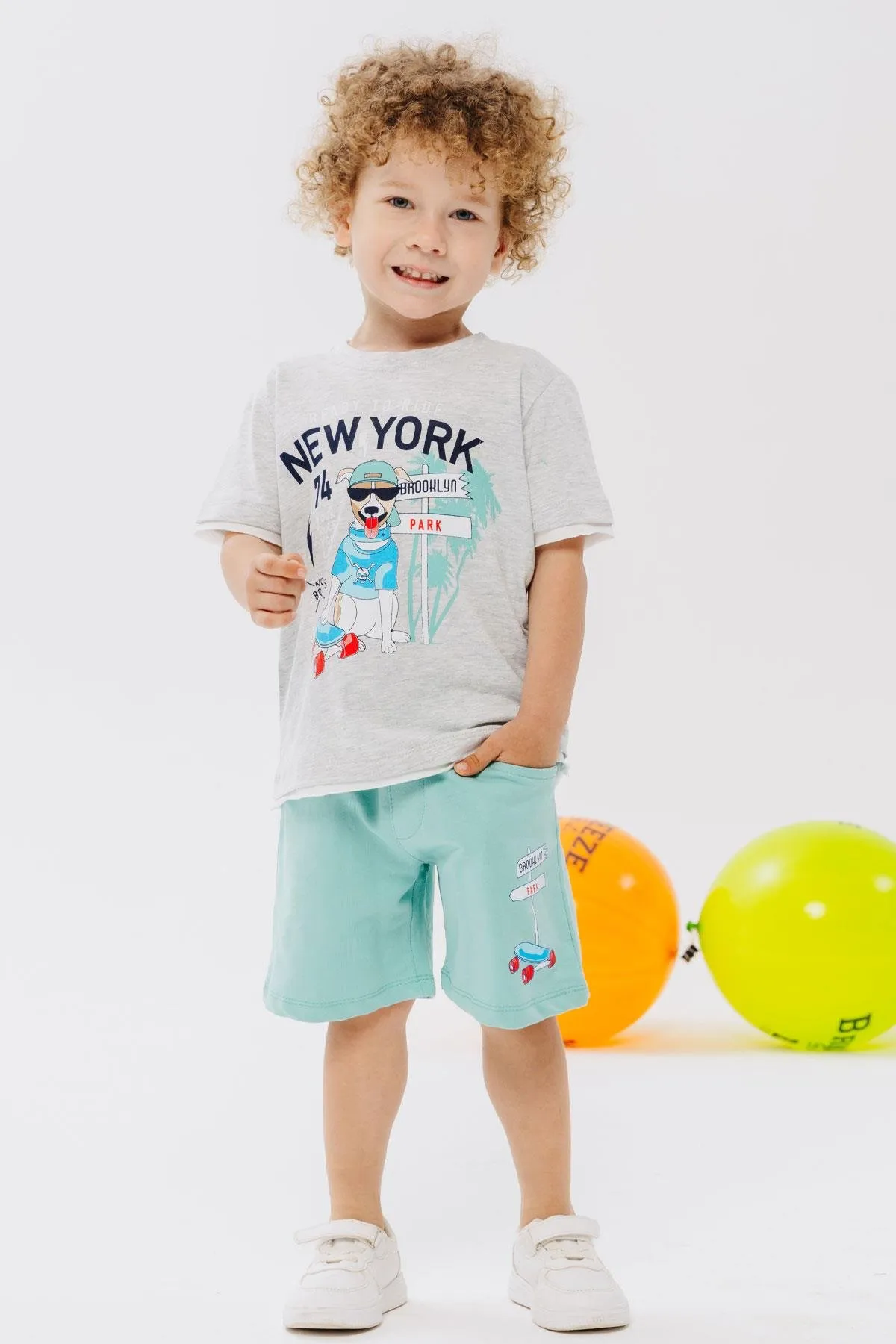طقم تي شيرت مطبوع بياقة دائرية و بنطلون للأولاد - Beyond Store