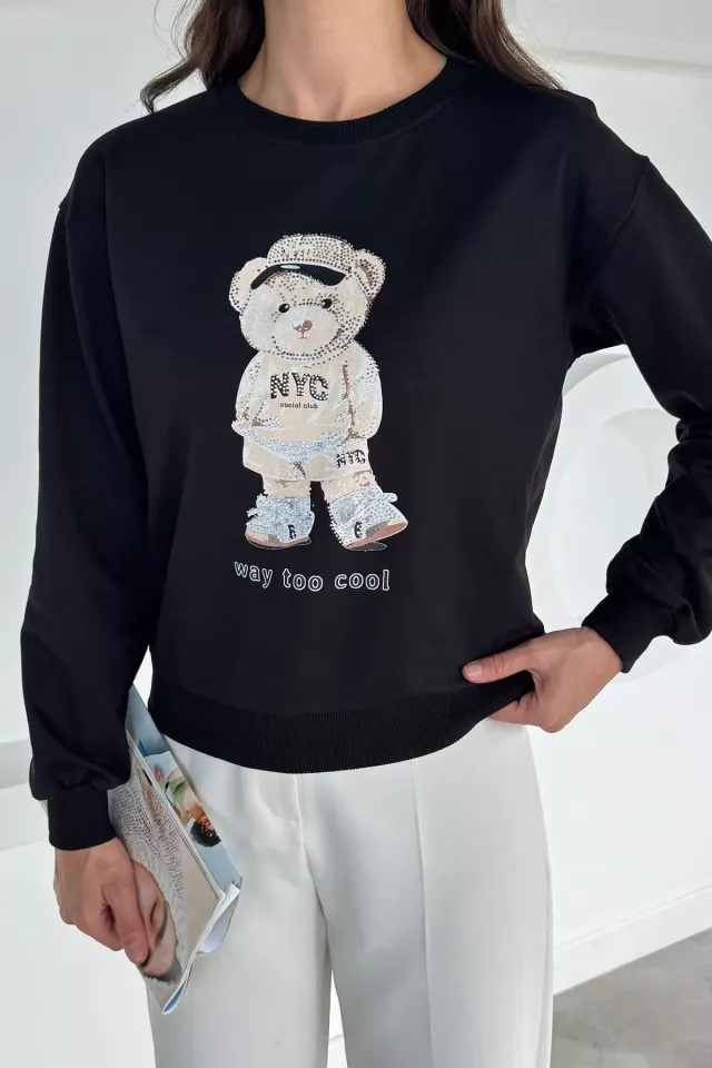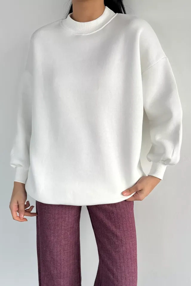سويتشيرت نسائي اوفرساز بياقة دائرية و قصة أكتاف منخفضة