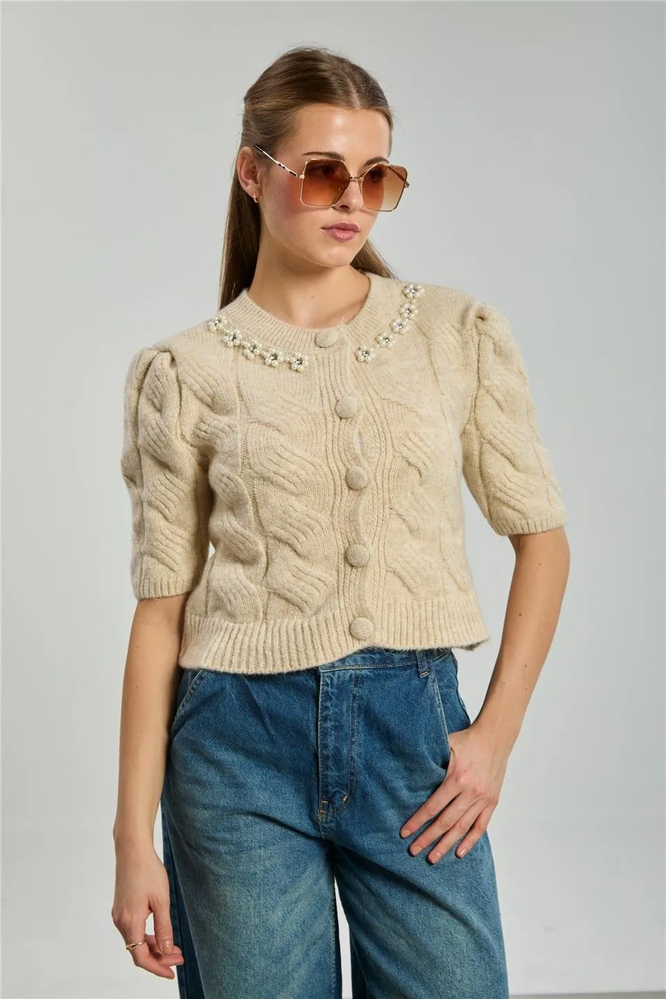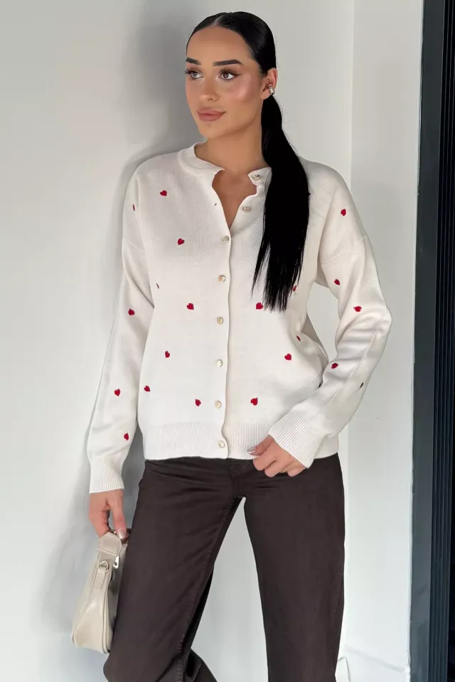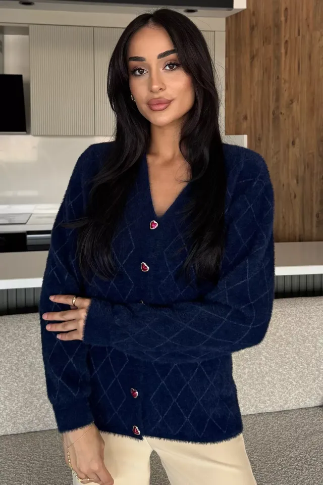 كارديجان نسائي محبوك بأكمام عادية و ياقة بشكل حرف V - Beyond Store