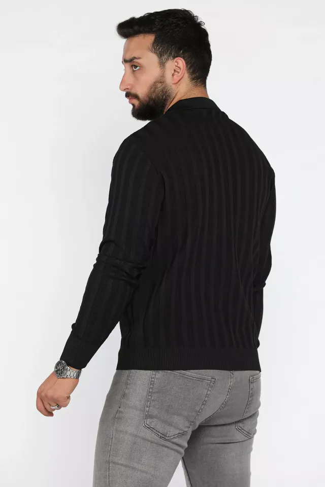 سويتر مخططة بأكمام طويلة وياقة بولو بسحاب للرجال - Beyond Store
