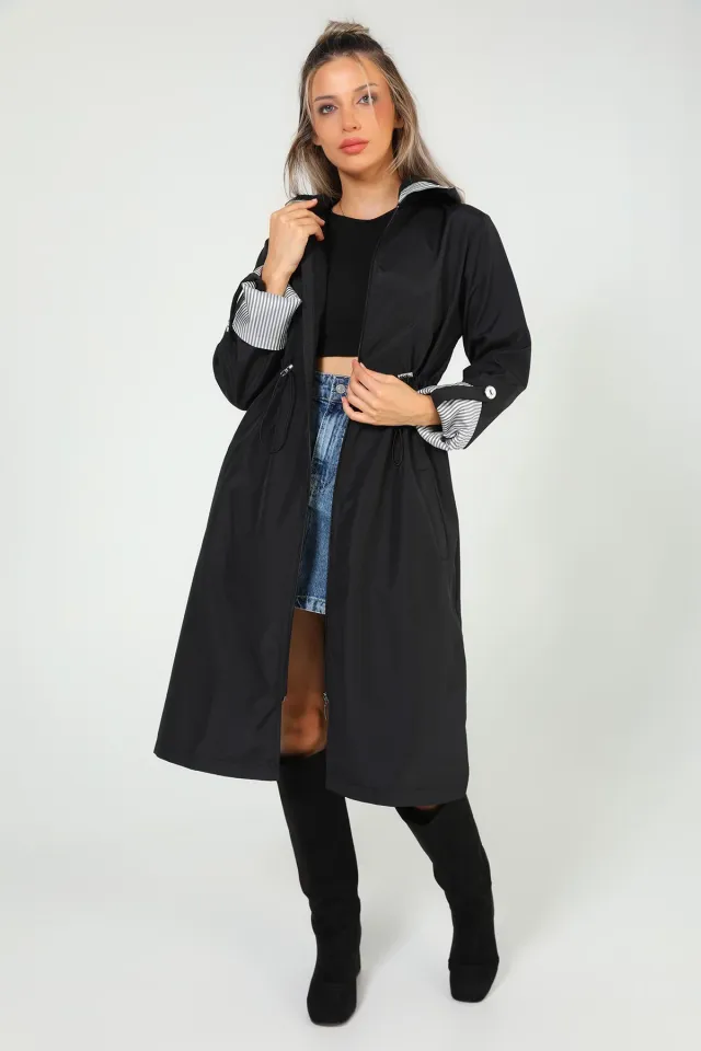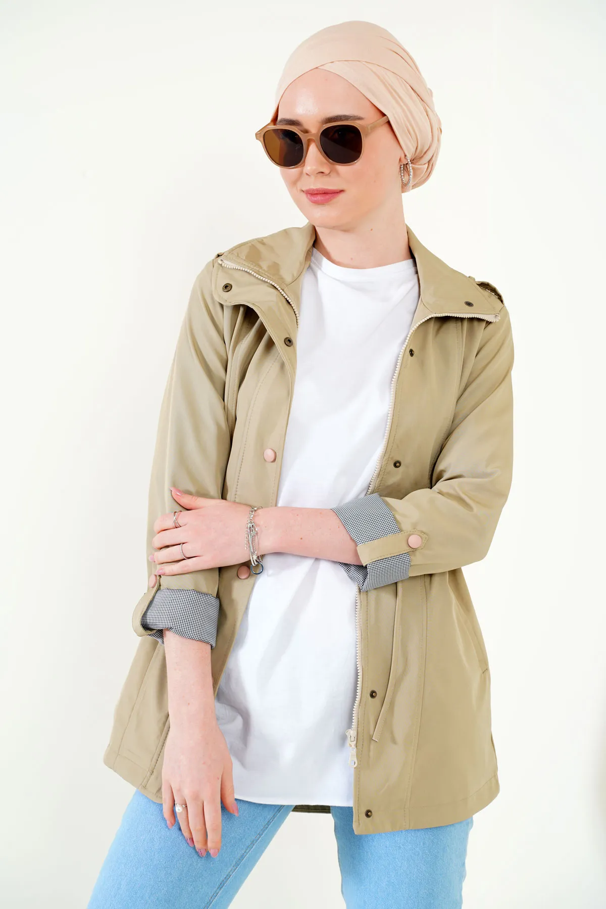 معطف ترنش نسائي مقاوم للرياح بقصّة مستقيمة و ياقة بصدر مزدوج