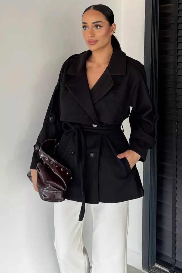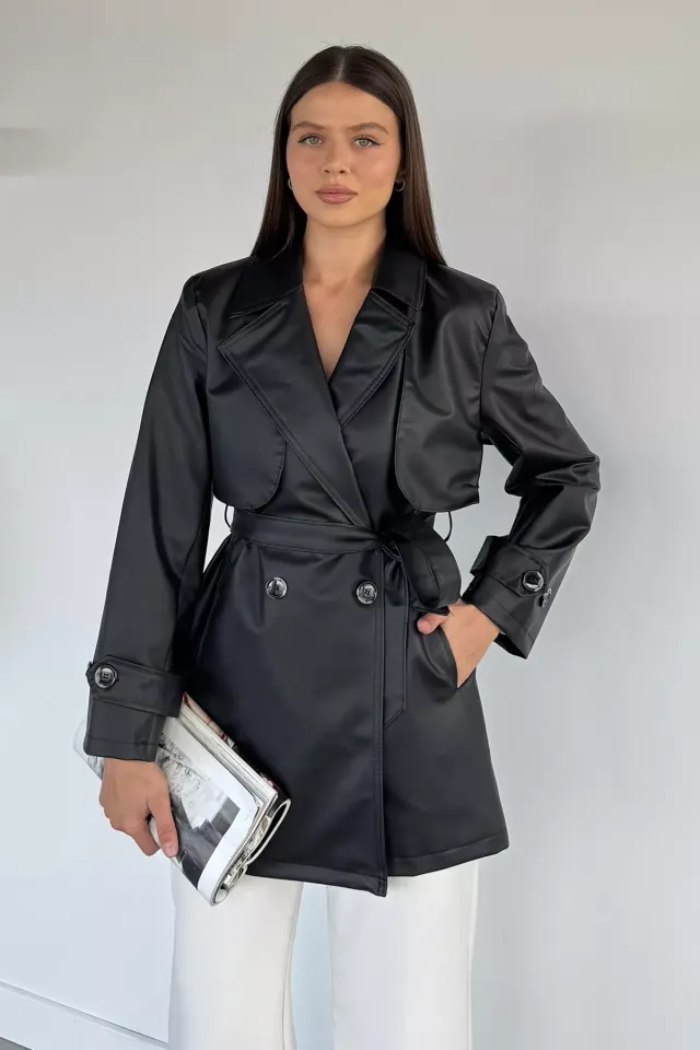 مميزات المنتج: معطف ترينش مزدوج الأزرار بياقة مقلوبة