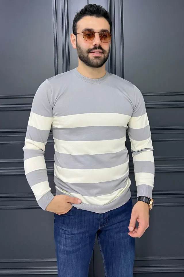 سويتر بنصف ياقة مدورة بقصة عادية للرجال