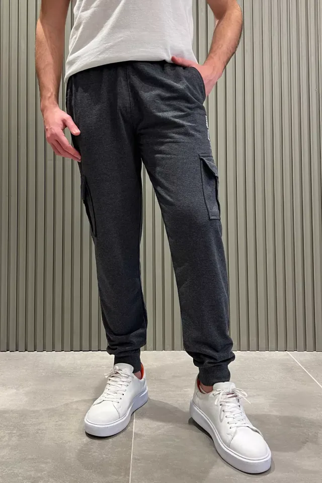 بنطلون رياضي رجالي بتفاصيل مطبوعة وخصر مطاطي
