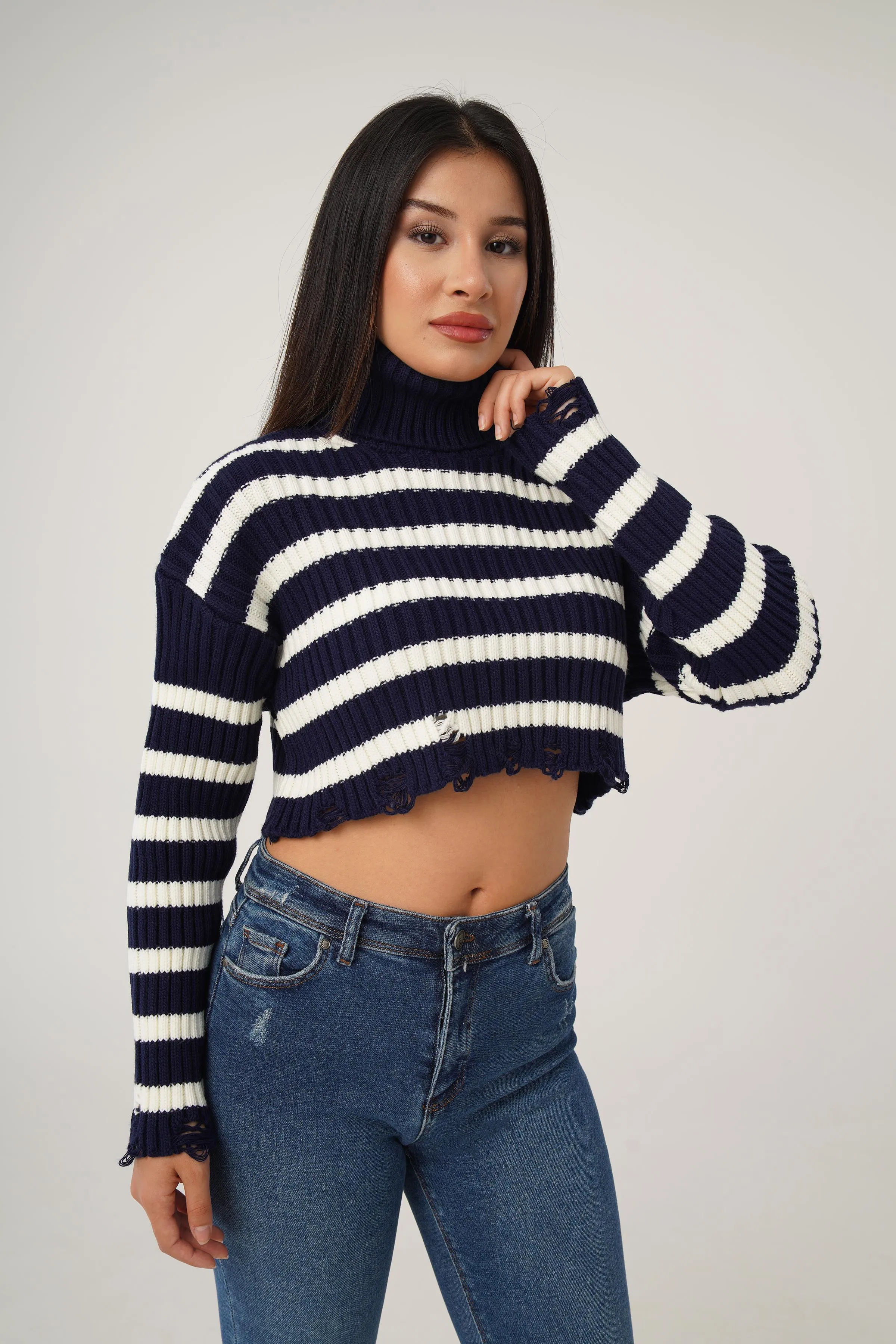 سويتر بياقة دائرية وتفاصيل مطرزة