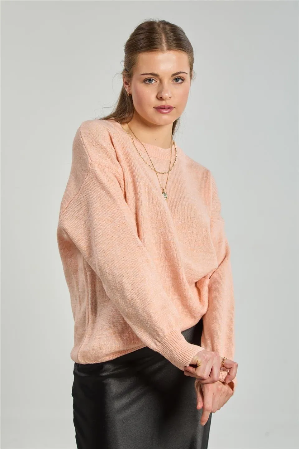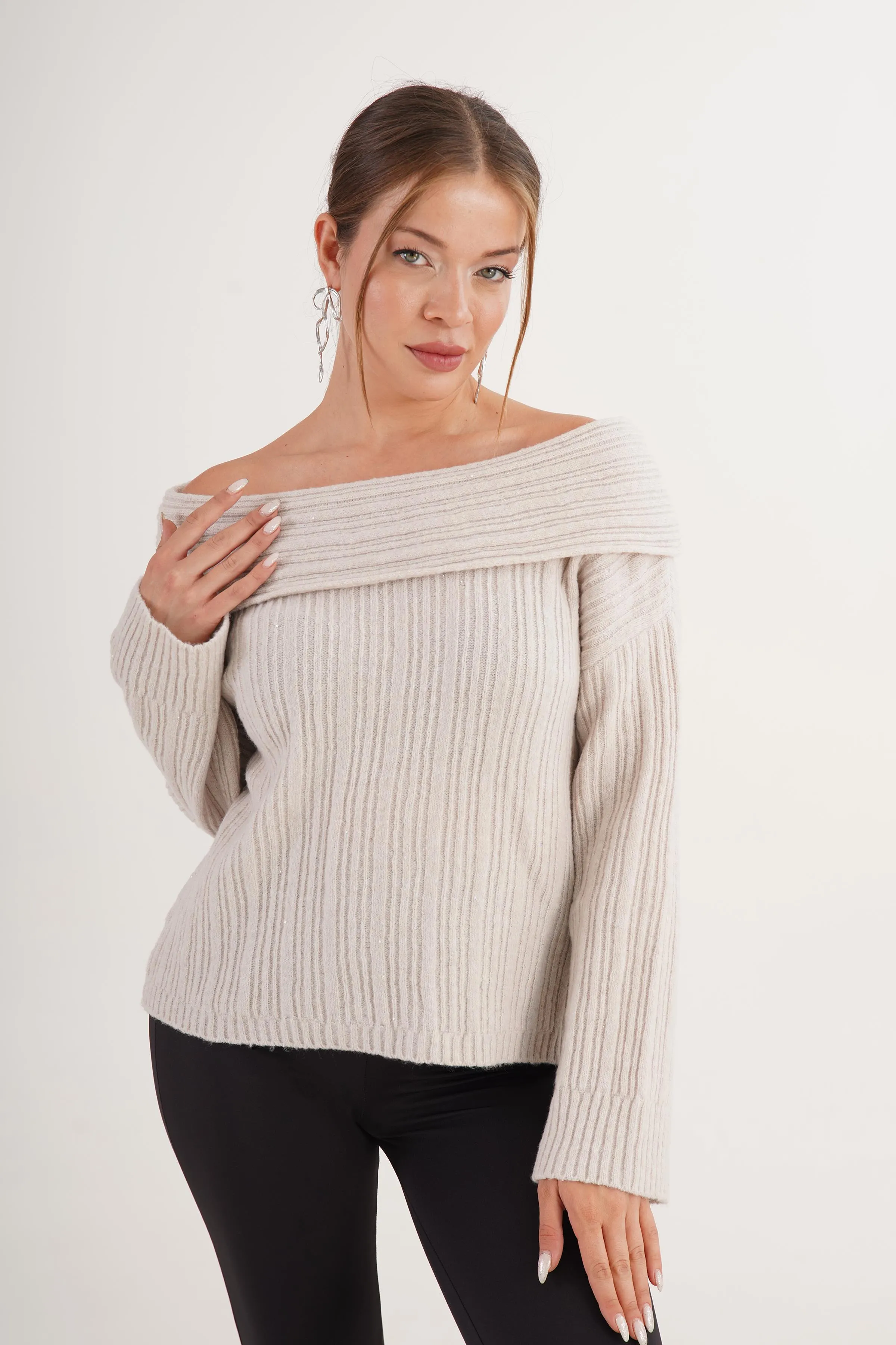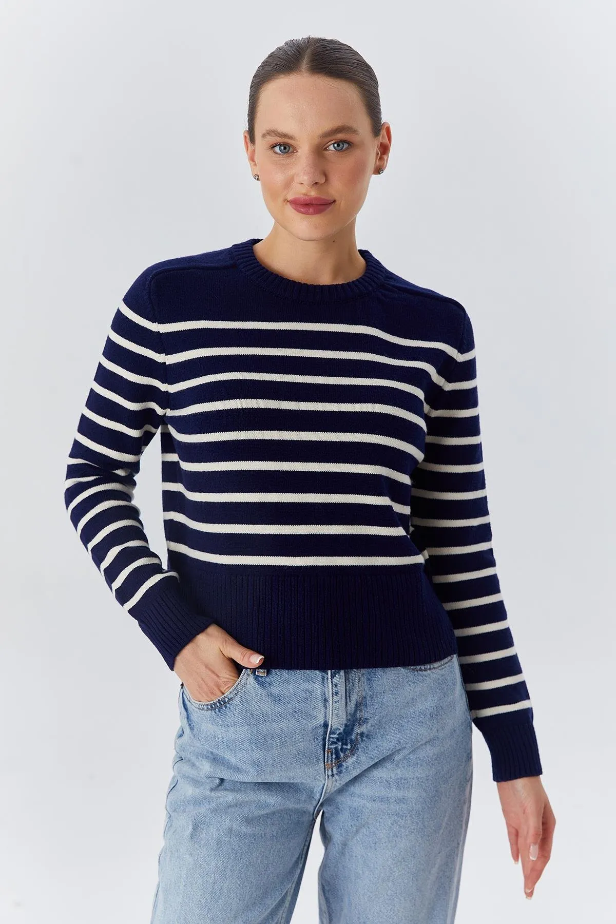 سويتر كاجوال مخططة بياقة بولو وأكتاف منسدلة