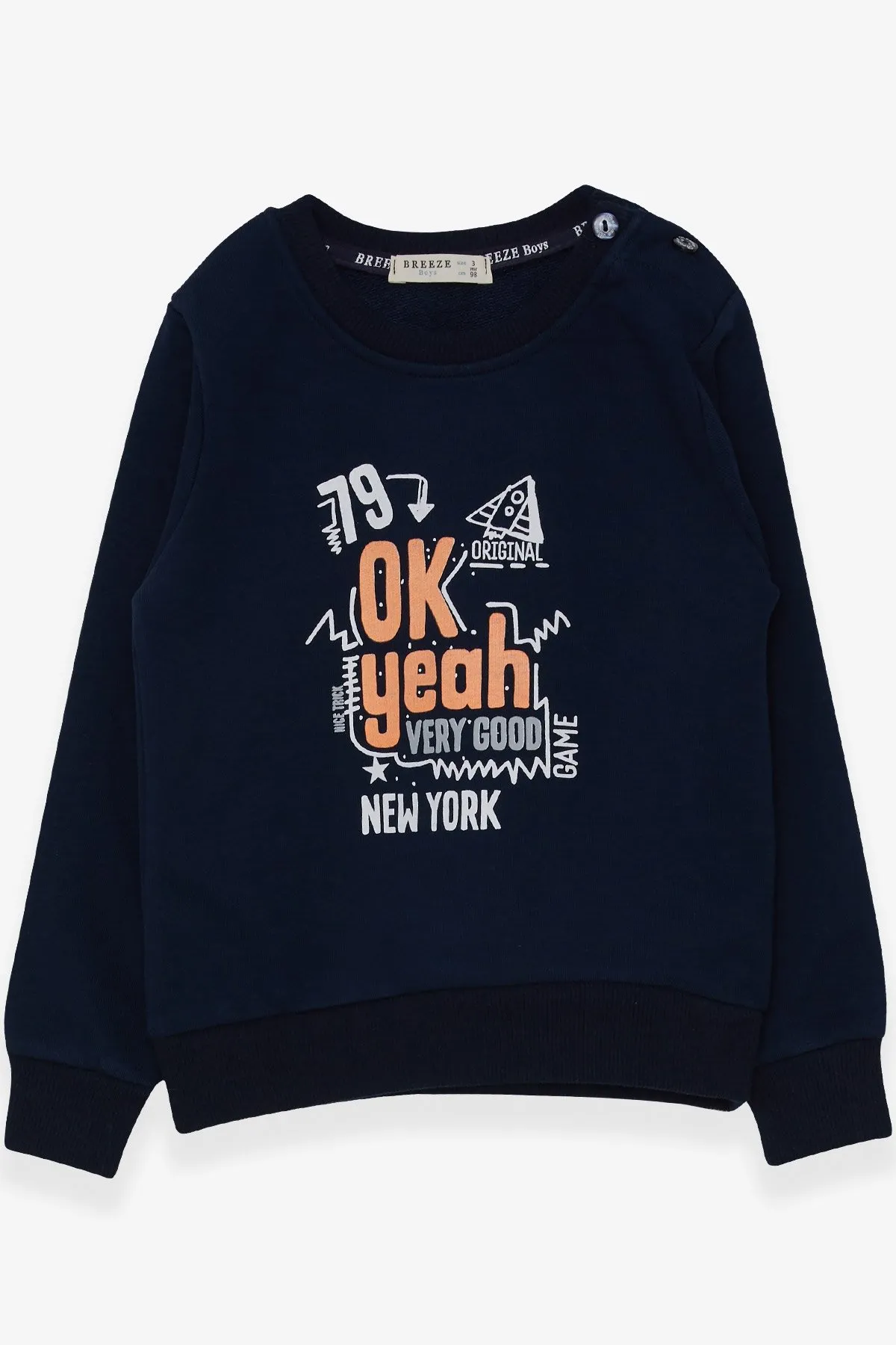 سويتشيرت ولادي مطبوع بنمط كتابة و ياقة دائرية - Beyond Store