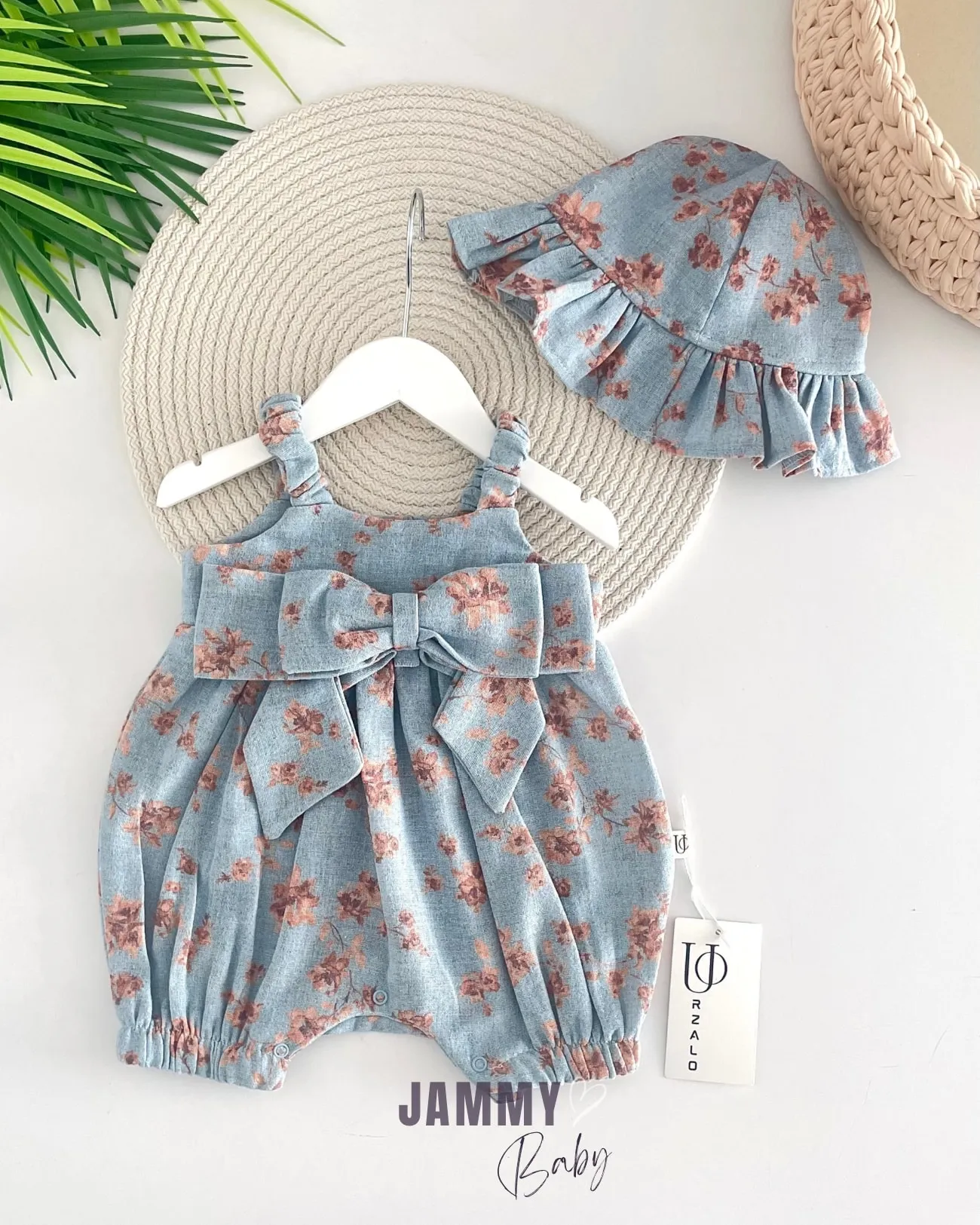 جمبسوت مطرز بأكمام كاب و تفاصيل مخرمة للبنات الرضع