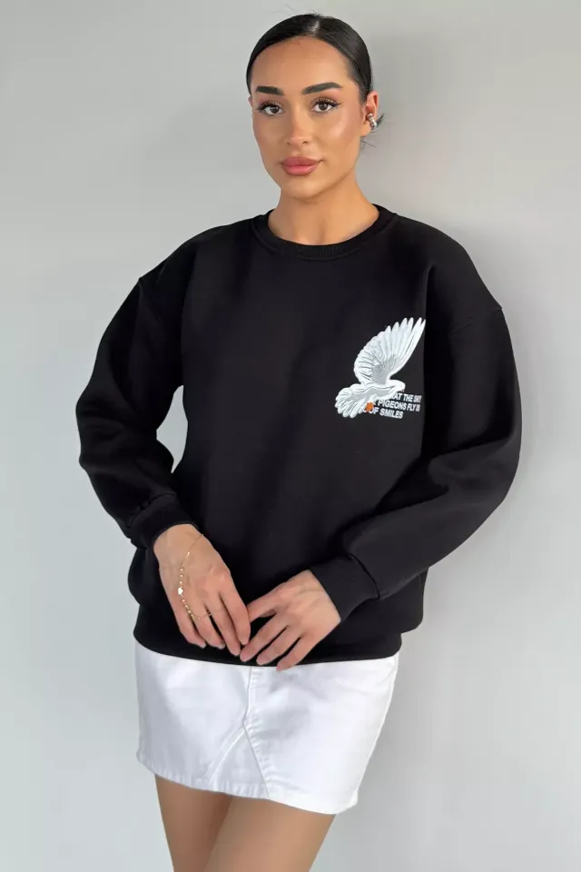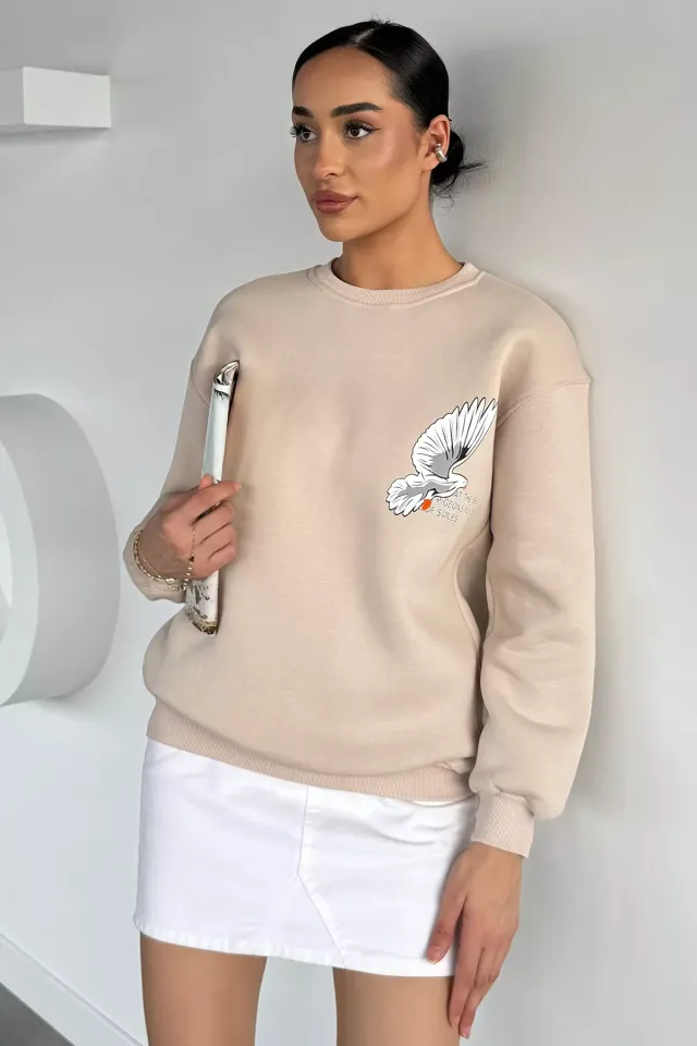 سويتشيرت نسائي قصير بياقة قائمة و قصة أكتاف منخفضة