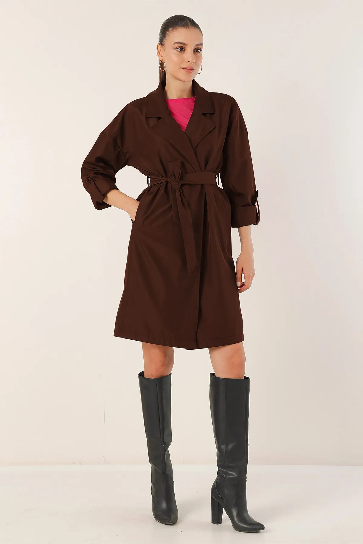 معطف ترينش طويل مبطن