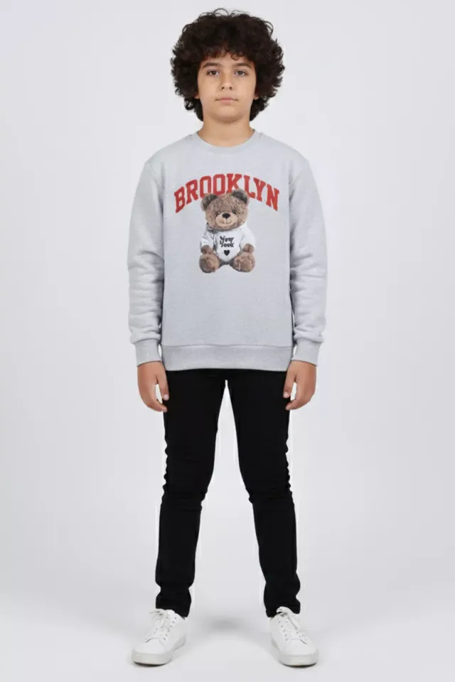 سويت شيرت مطبوع بأكمام طويلة وياقة دائرية للأولاد