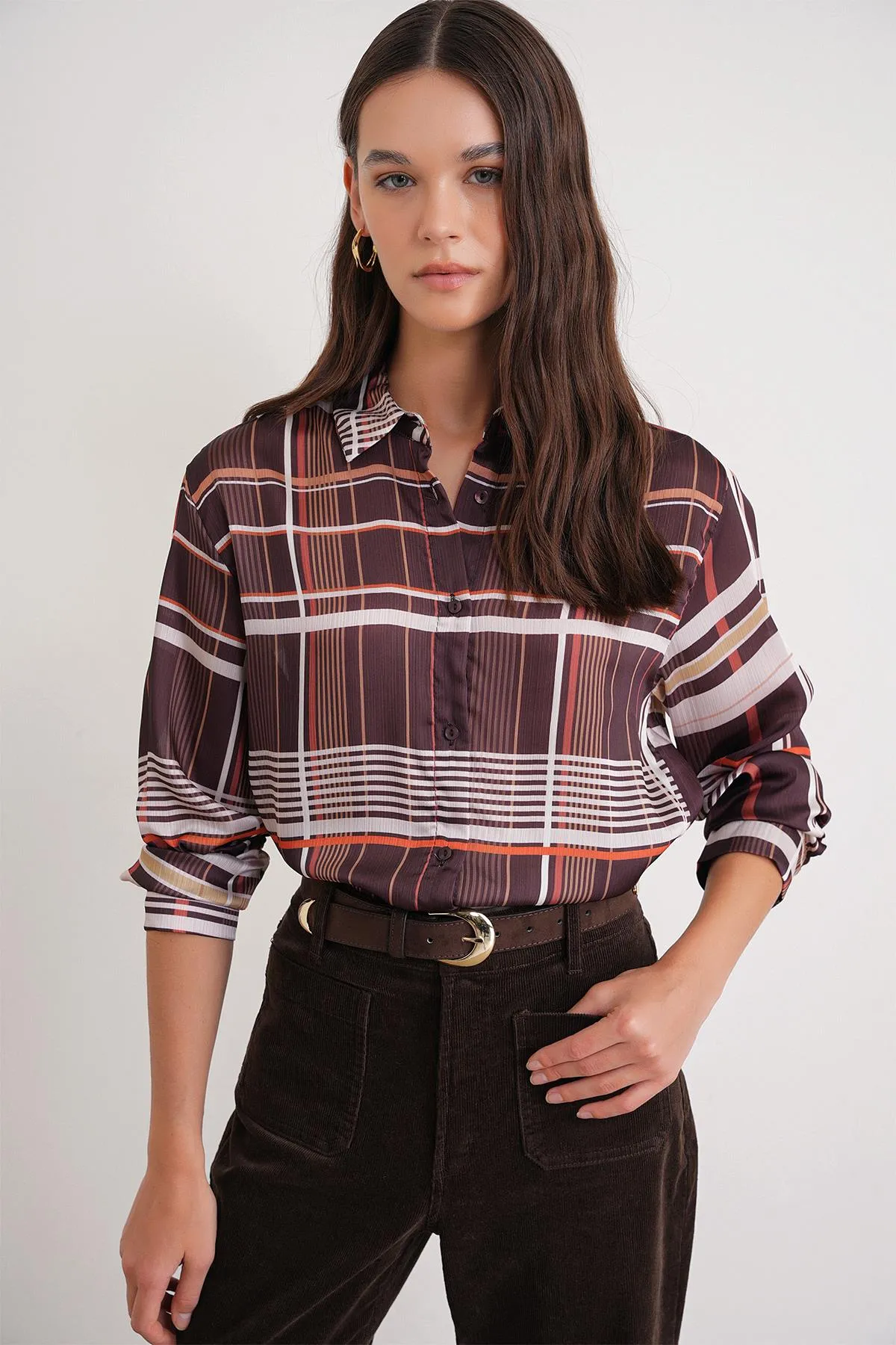 قميص نسائي من الساتان بقصّة مريحة وأكمام طويلة - Beyond Store