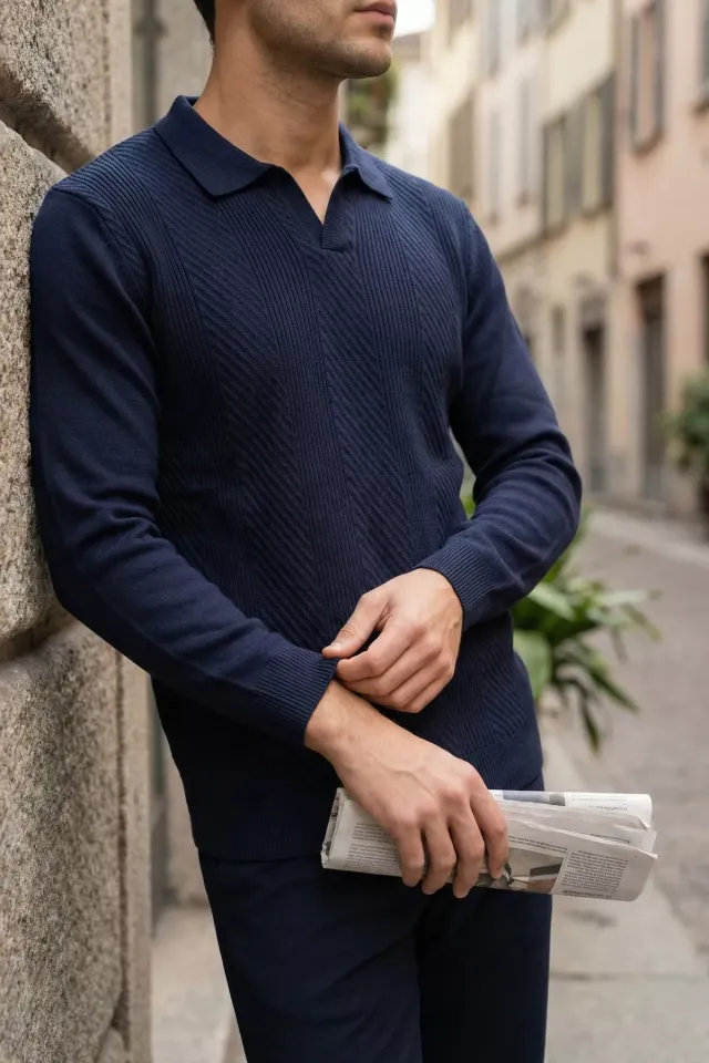 سترة منقوش بأكمام طويلة ونصف ياقة مدورة للرجال - Beyond Store