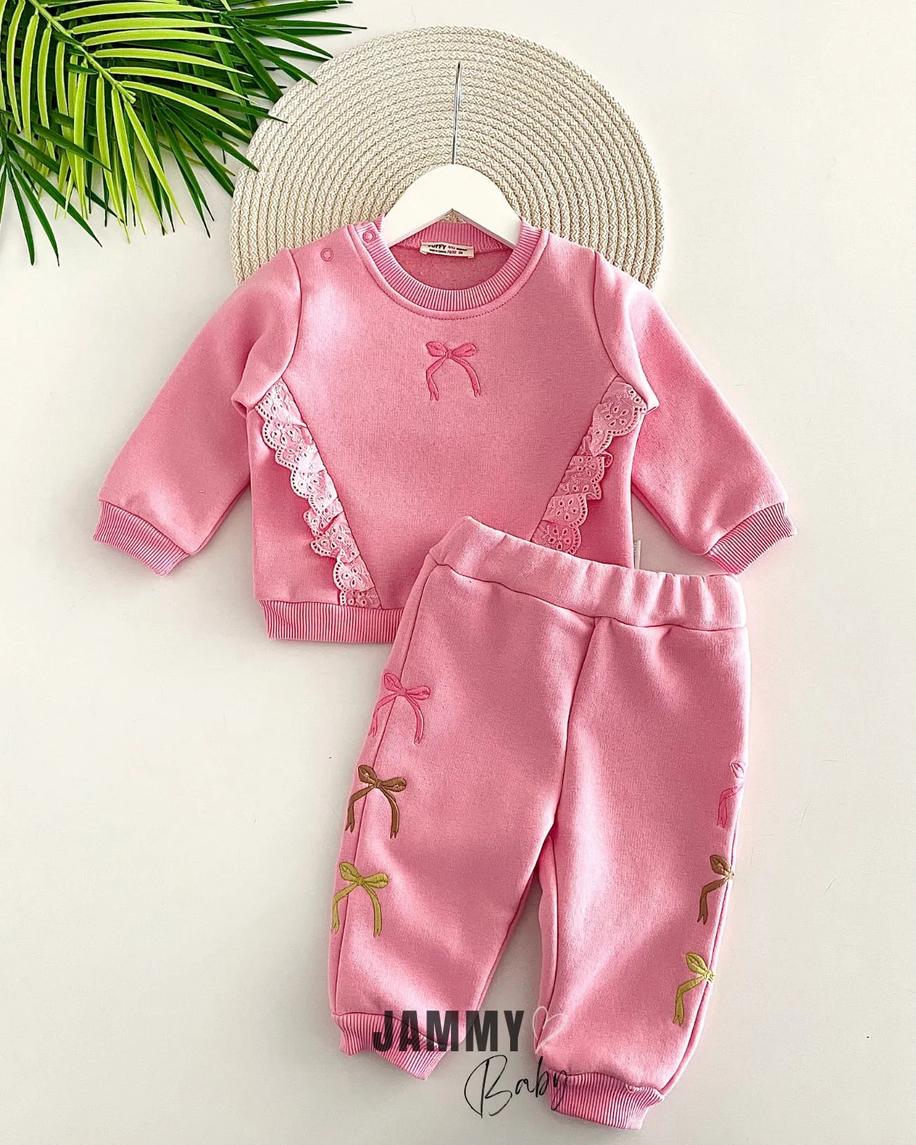 طقم بناتي مضلع بياقة دائرية وأكمام مكشكشة، مصنوع من قطن ناعم ١٠٠٪. تصميم مريح وجيد التهوية، مثالي للارتداء اليومي.