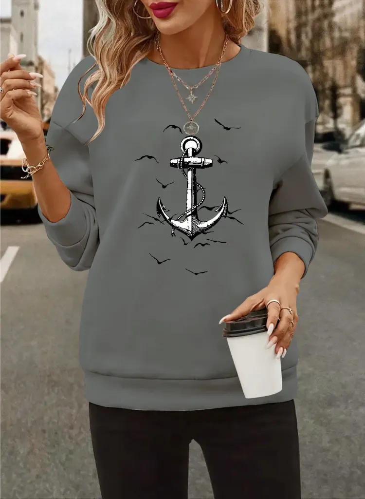 بلوزة نسائية محبوكة بياقة دائرية و نقشات